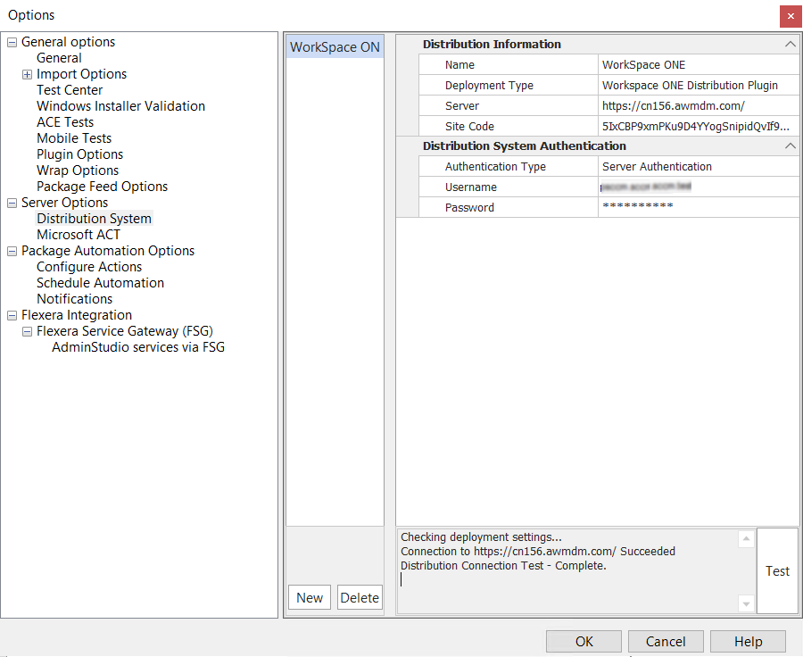 In the left pane of the Distribution System tab, select the name of the connection that you want to edit. The selected connection’s settings are displayed.
