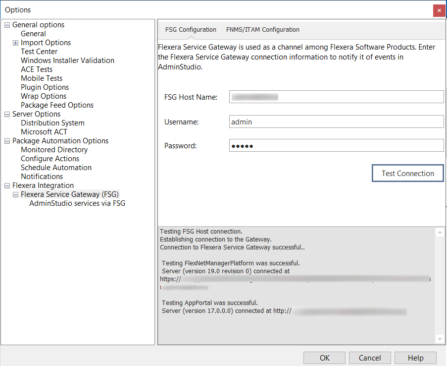 You enter the login credentials for your Flexera Service Gateway server on the FSG Configuration tab.