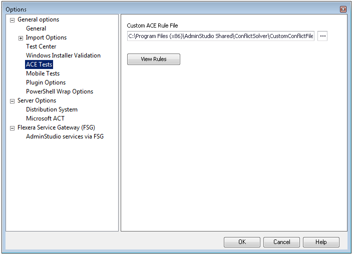 On the ACE Tests tab of the Options dialog box, you can access the Rules Viewer, which can be used to add user defined ACEs, and you can specify a custom ACE rule file.