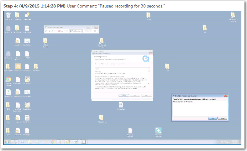 If you entered any comments, they are listed in the file along with a screen capture of the Highlight Step and Commen t dialog box.