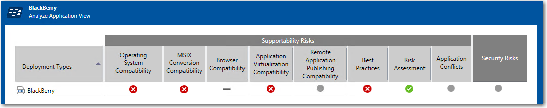 To view the status of a single application’s packages, select the application in the tree. The Analyze Application View opens.