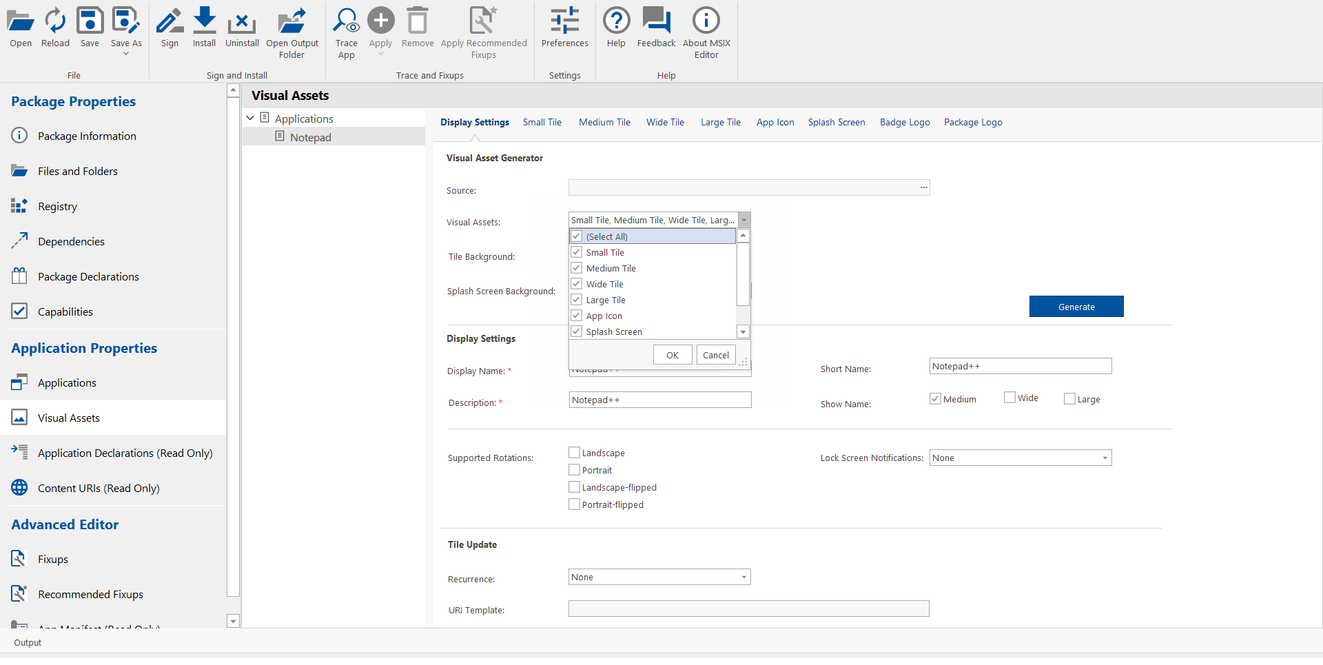 In the Visual Assets drop down, select the desired visual assets, and then click OK.
